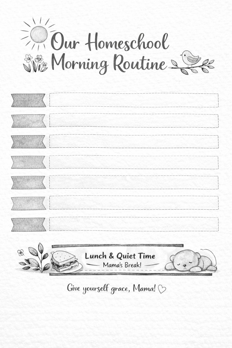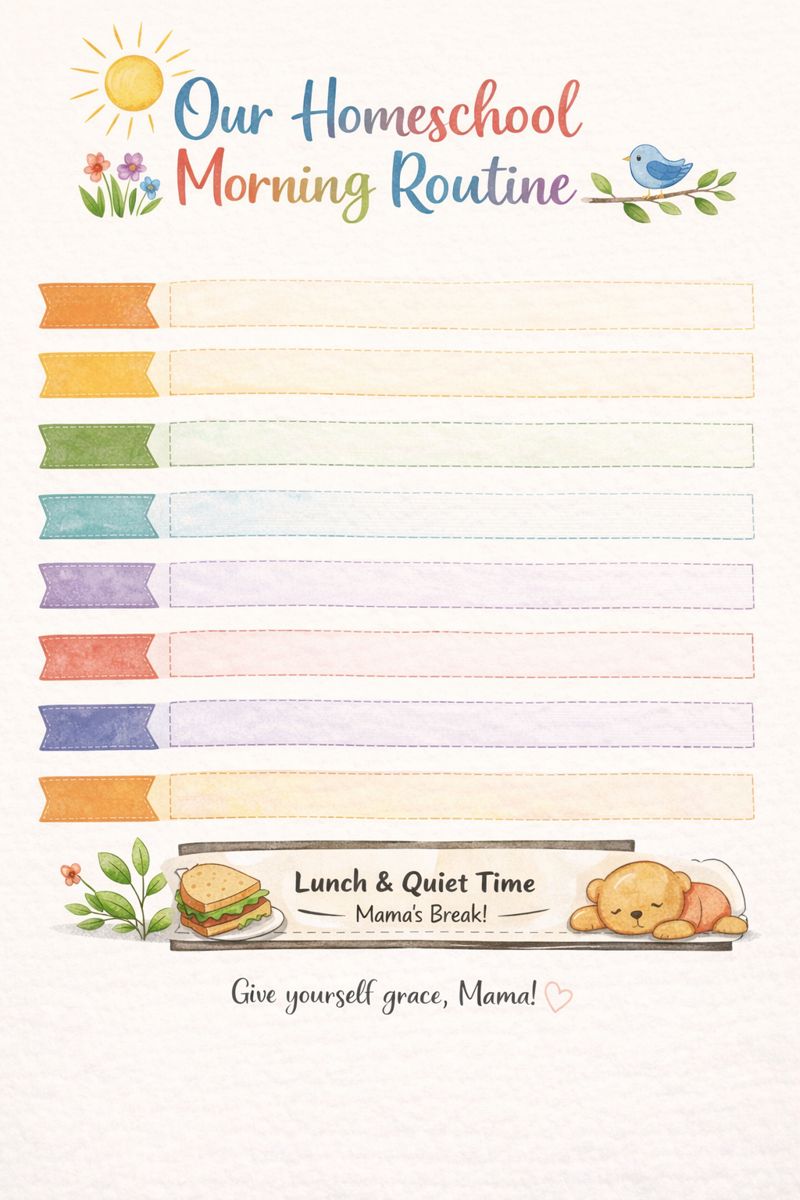 ! I’ve created a simple, pretty morning routine chart you can print and post in your homeschool space. 🌞